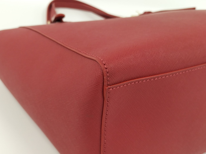 ◆商品情報 | ・カラー:レッド ・素材/ライン:PVCコーティング ・サイズ:最大約 W上部:40 下部:30×H21×D11(cm) ・ショルダーの長さ:50(cm) ※多少の誤差はご了承下さい。 ・内側:オープンポケット×5 :ファスナーポケット×1 |