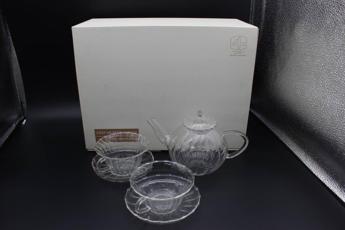 キャトルセゾン quatre saisons  ティーポット1個・ティカップ&ソーサー2客 箱付き