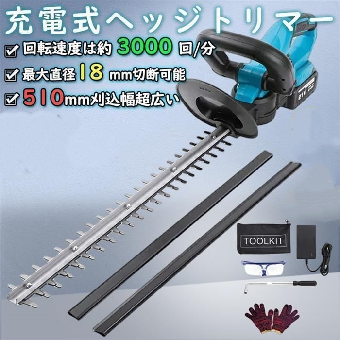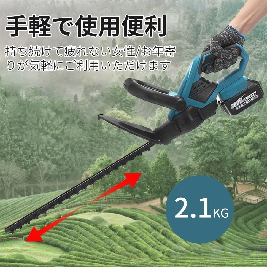 ヘッジトリマー 芝刈り機 充電式 18Vバッテリー互換 草刈り機 剪定バリカン 枝切り 庭木 電池×1+充電器×1
