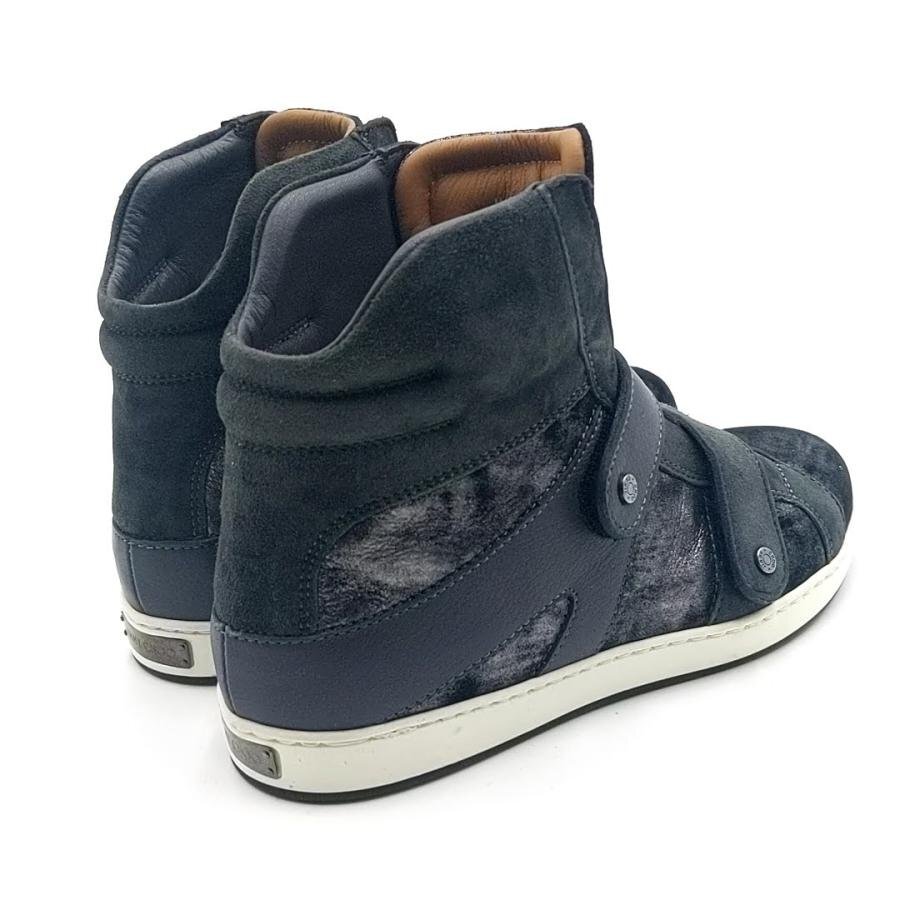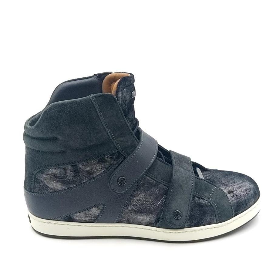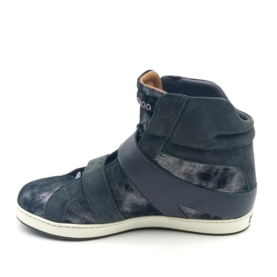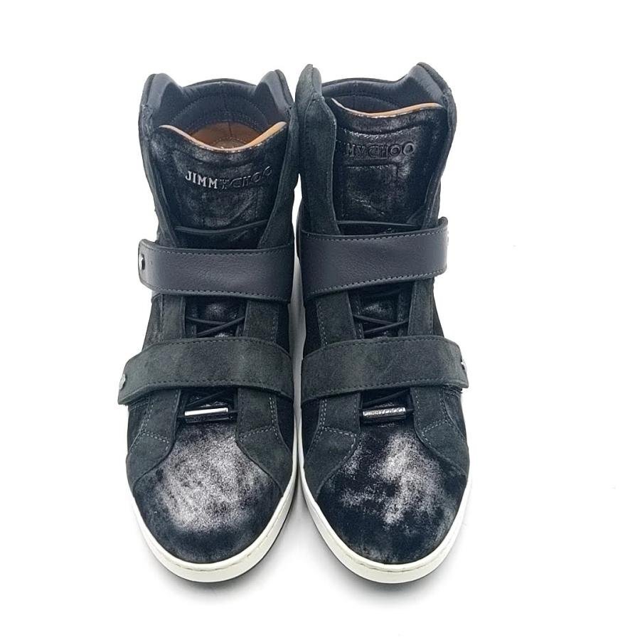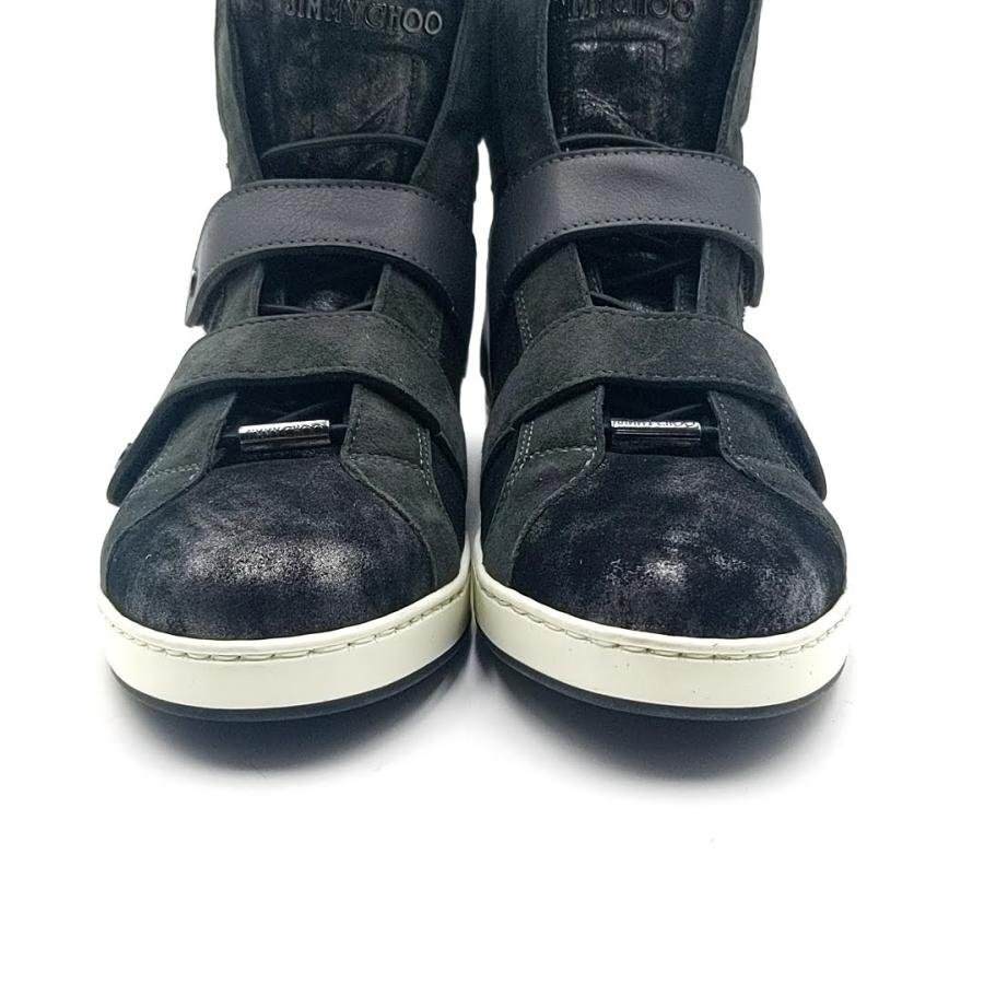 ・送料無料 超美品 ジミーチュウ JIMMY CHOO スニーカー 靴 シューズ ハイカット BELLS ベルクロ レザー 本革 伊製 イタリア製 36 1/2 23.5cm相当 チャコール系 レディース