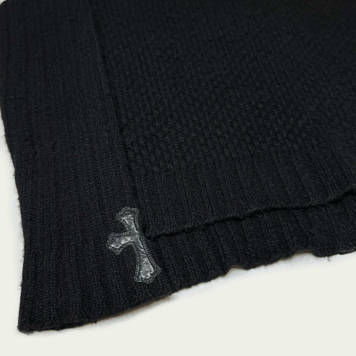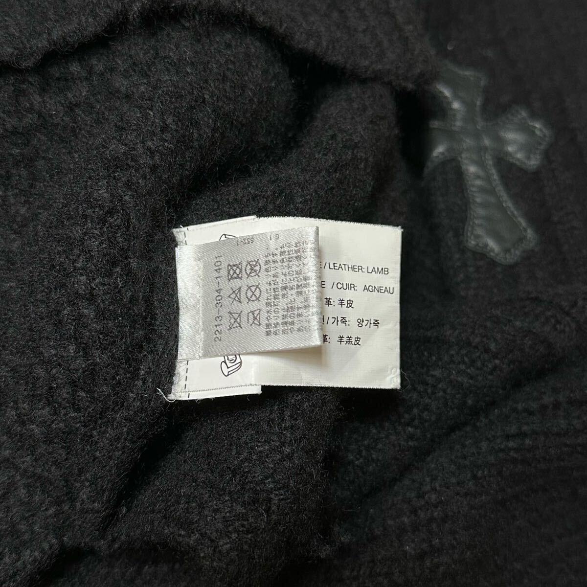 CHROME HEARTS カシミア×レザー クロスパッチ クルーネックニット BLACK