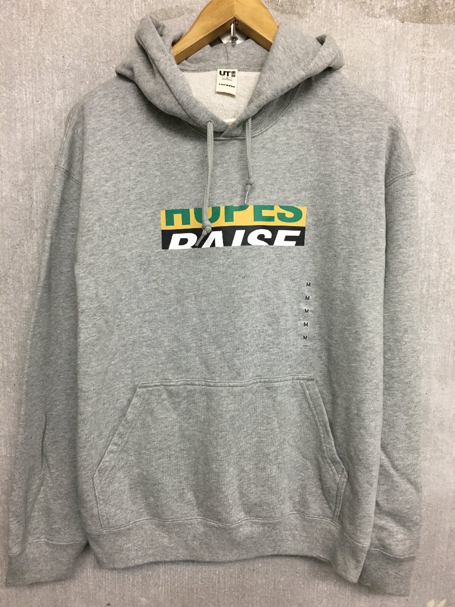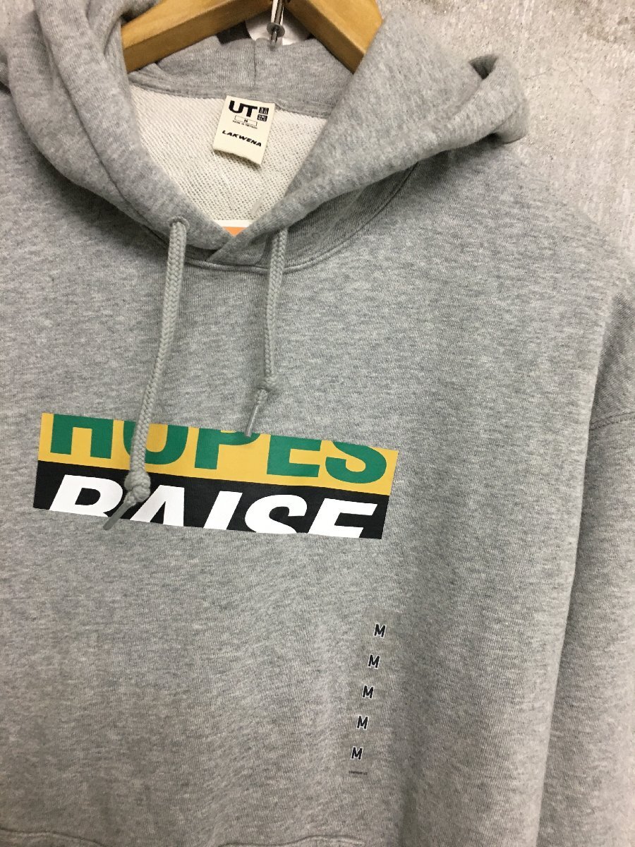 ◆UNIQLO ユニクロ 新品タグ付き UT LAKWENA ラクウェナ メッセージ スウェット パーカー グレー サイズM