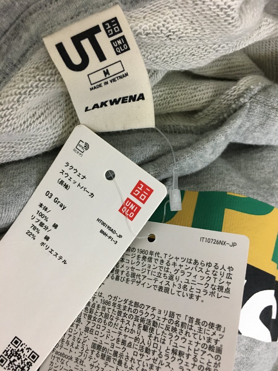 ◆ ◆UNIQLO ユニクロ 新品タグ付き UT LAKWENA ラクウェナ メッセージ スウェット パーカー グレー サイズM