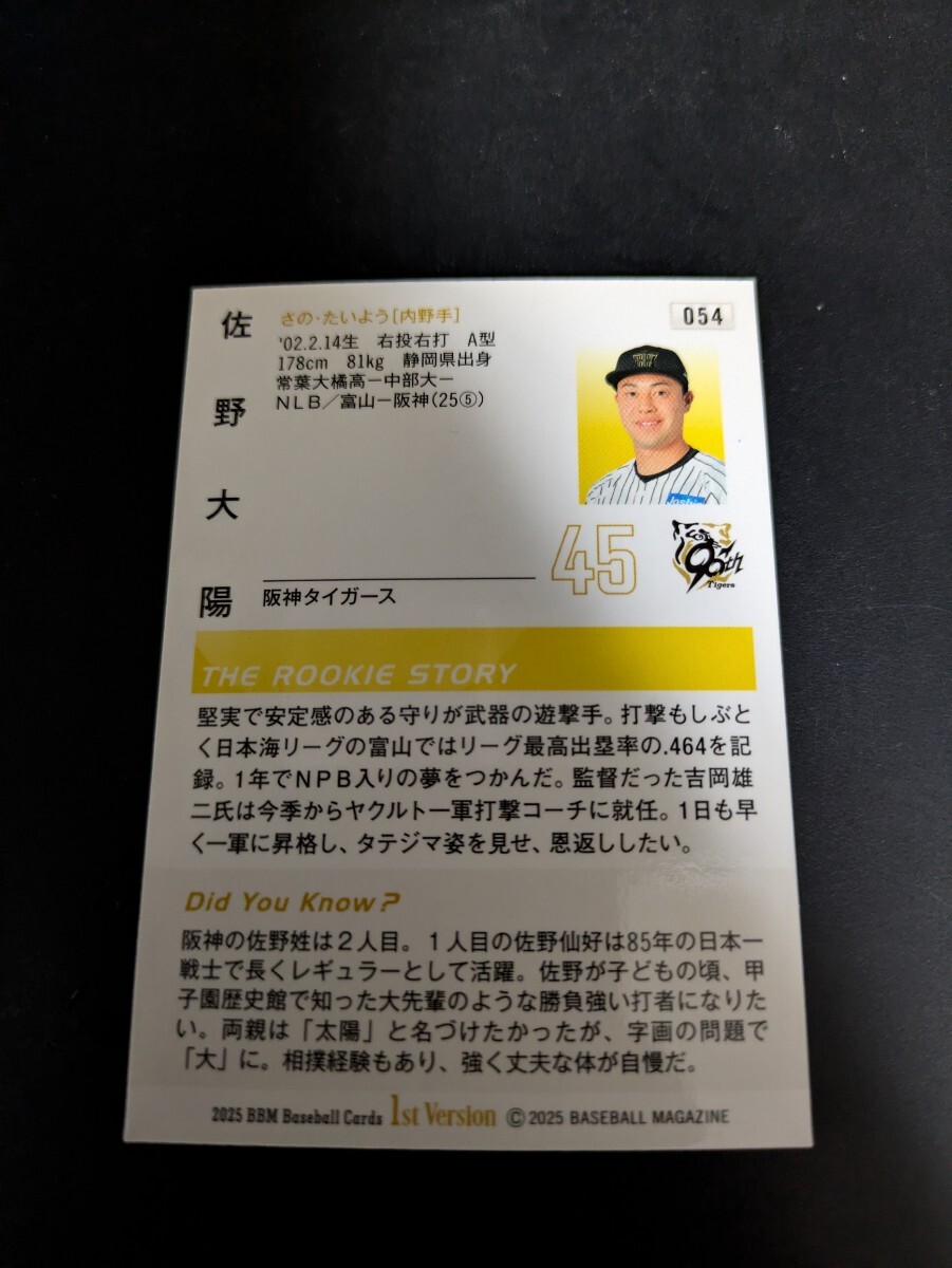即決★BBM2025 阪神タイガース 佐野大陽 ルーキーカード