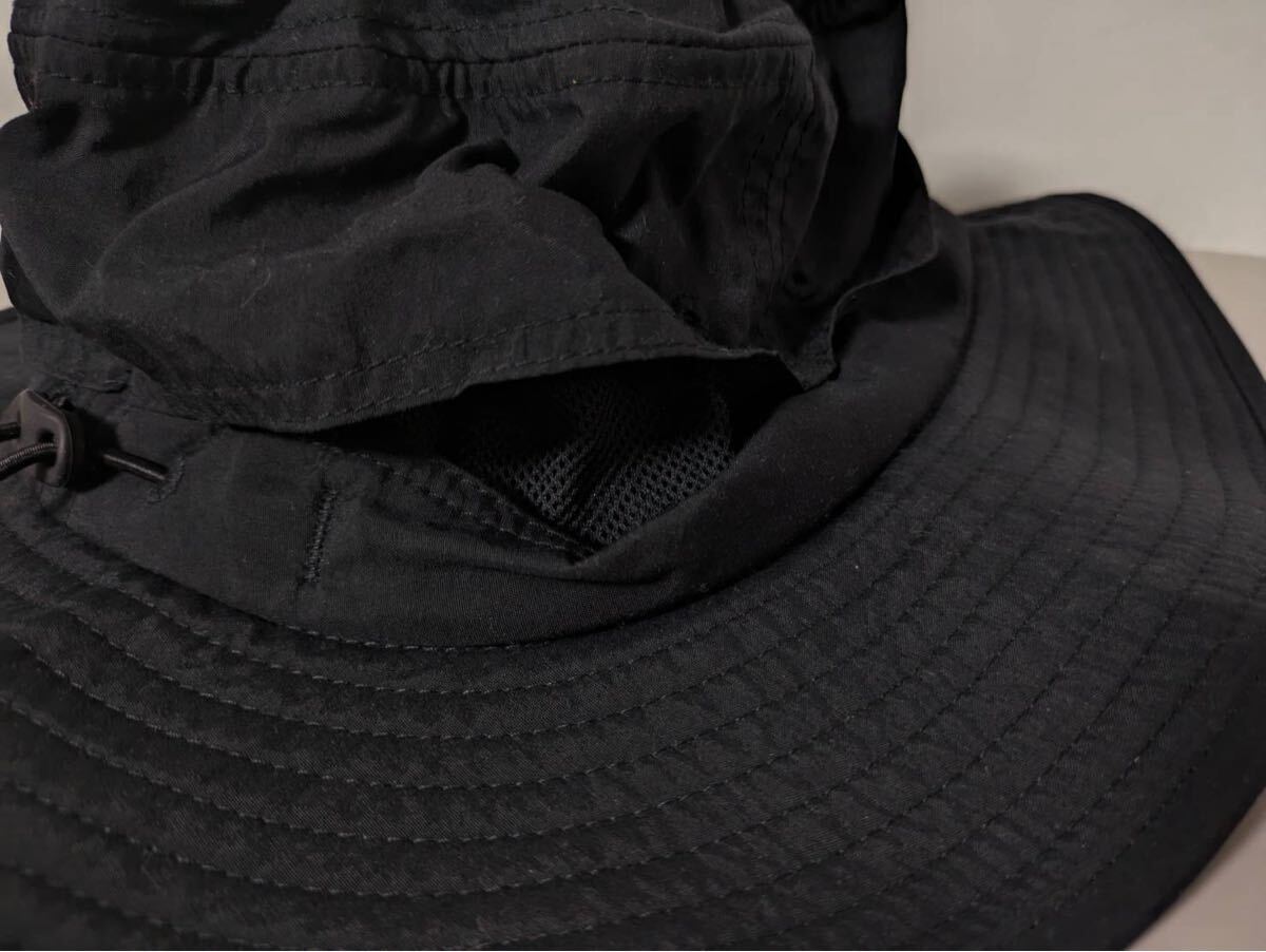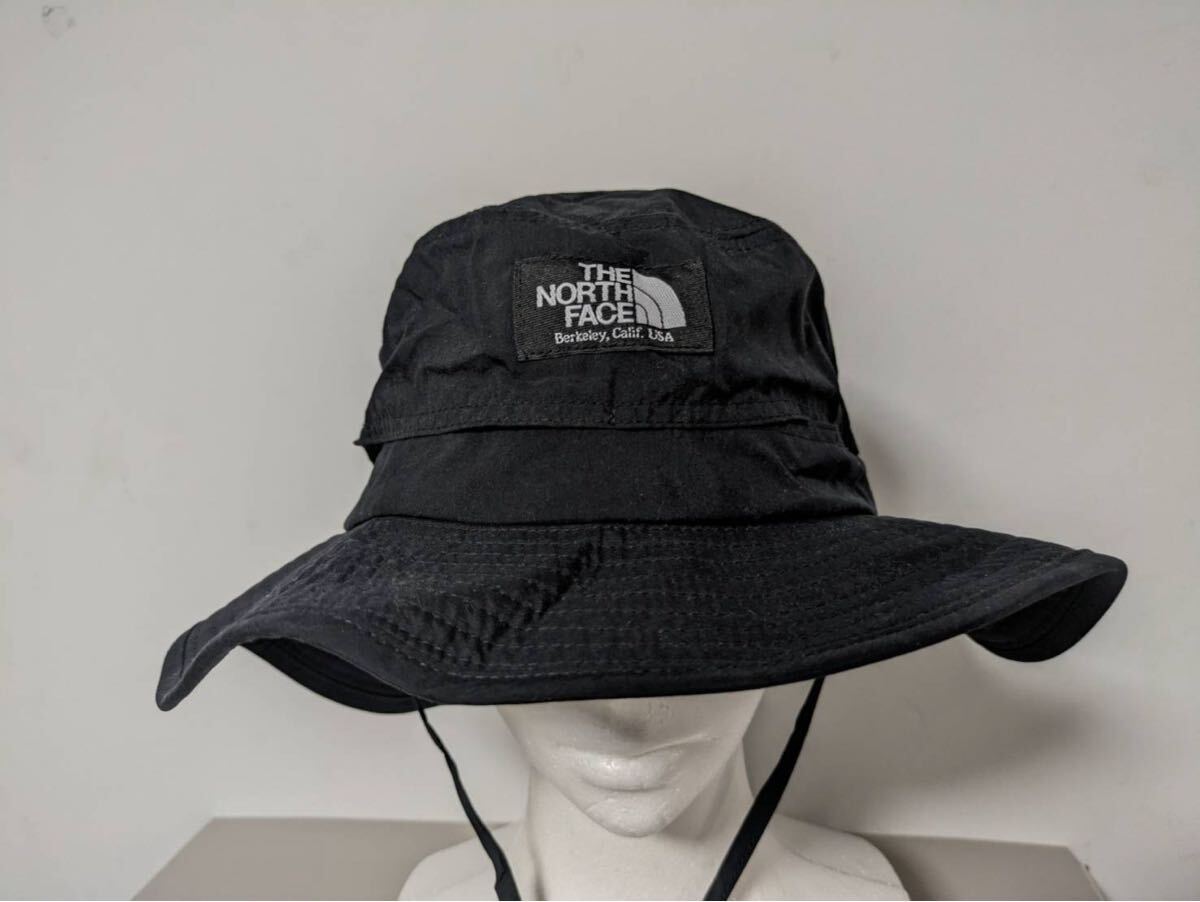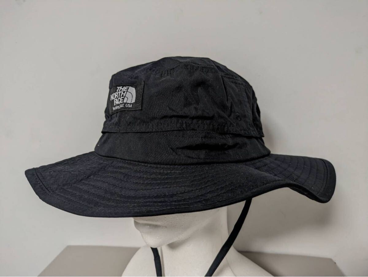 This is a stylish and functional safari hat by THE NORTH FACE in classic black. It’s tagged as size M, but the fit is on the smaller side and is likely best suited for women or those with a smaller head circumference.
