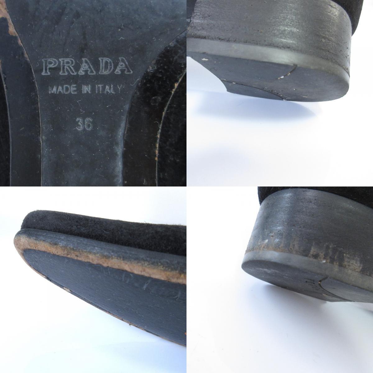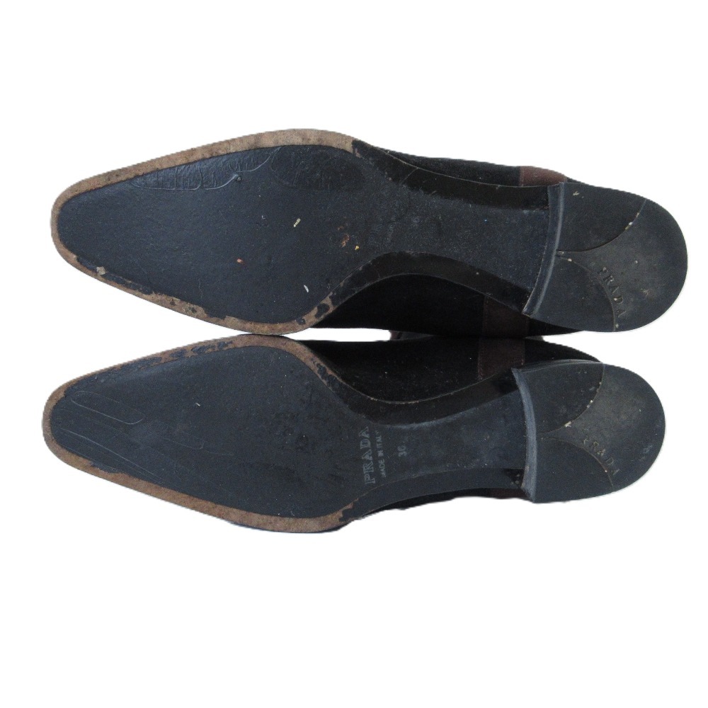 良品 PRADA プラダ リボン スエード スクエアトゥ ソフトロングブーツ サイズ36 23cm相当 ダークブラウン