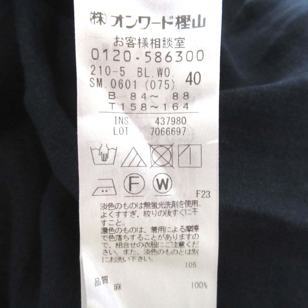 美品 23SS 23区 ショートスリーブ キーネック スキッパー リネン ブラウス サイズ40 ネイビー