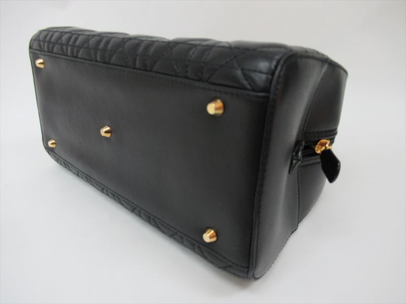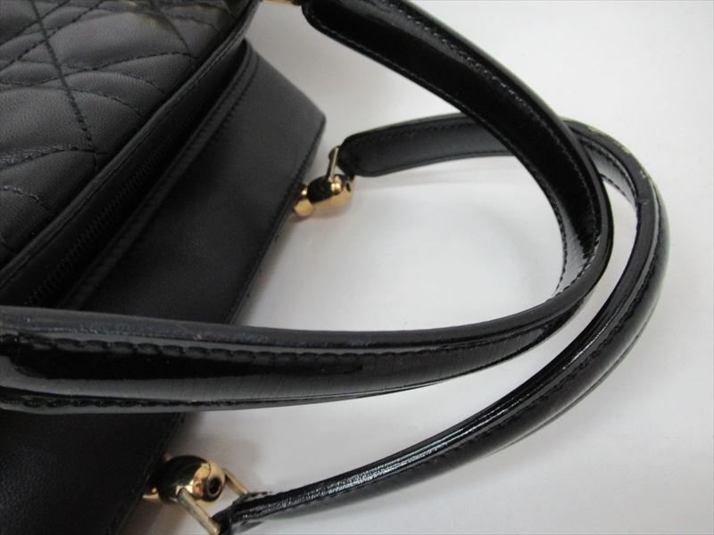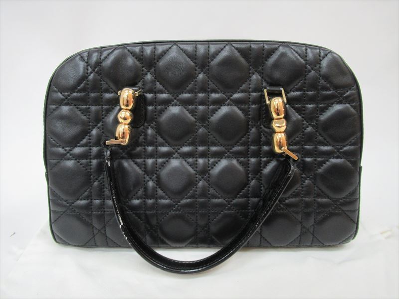 1円★中古品【クリスチャンディオール】MA0091 ハンド バッグ 黒 ブラック マリスパールカナージュステッチ ミニボストン ブランド