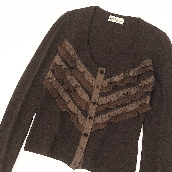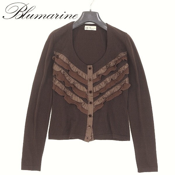 | 【FA564】◆Blumarine ブルマリン シルク使い フリル ウール ニット カーディガン ダークブラウン 42 | |