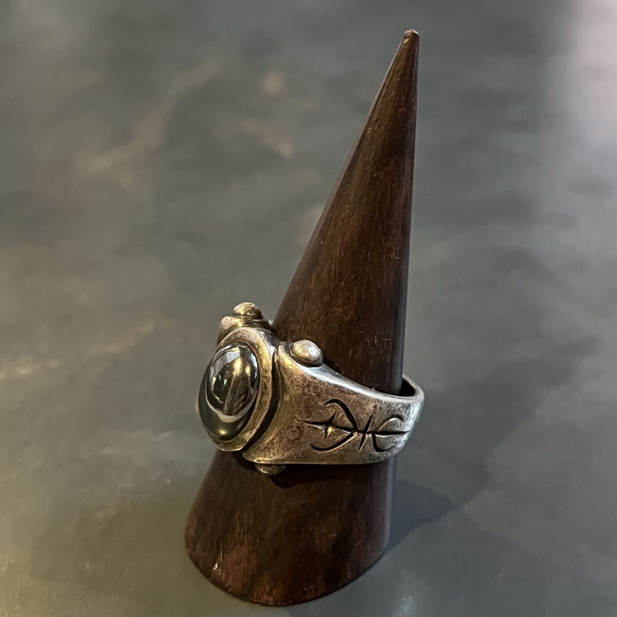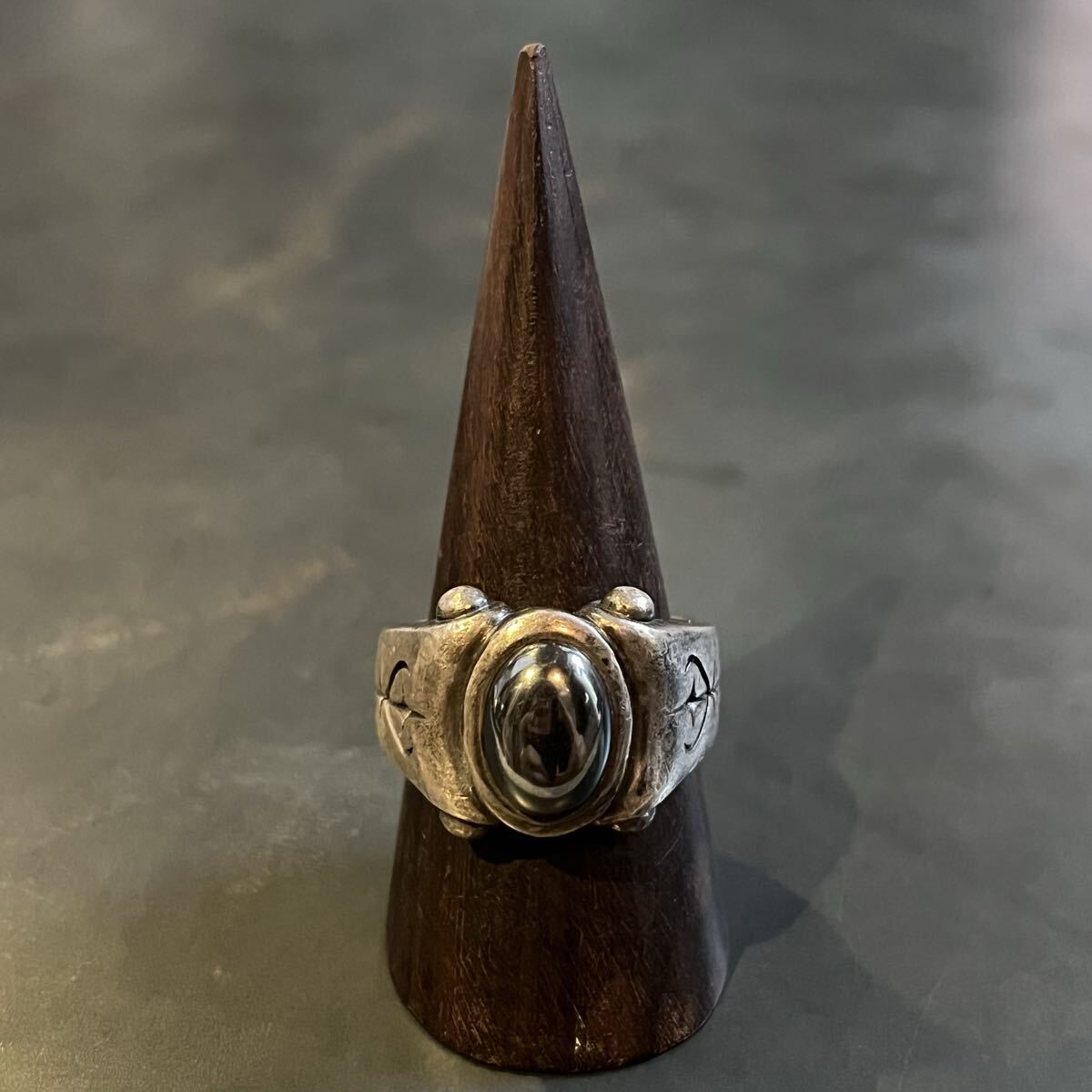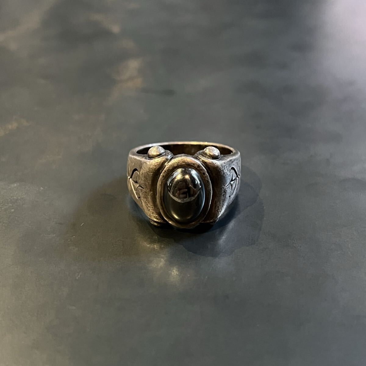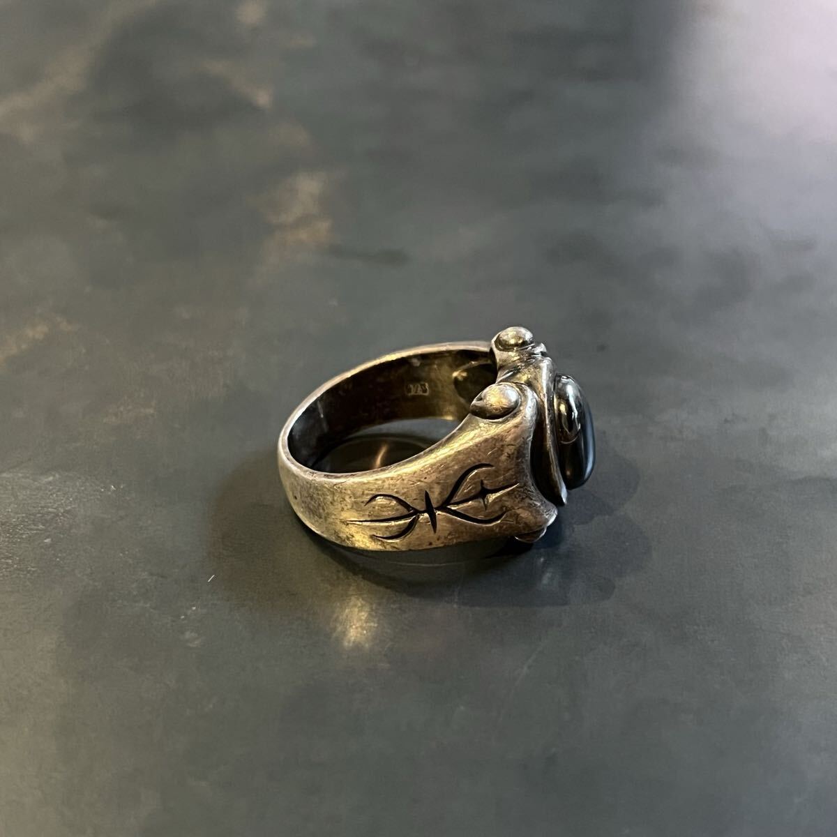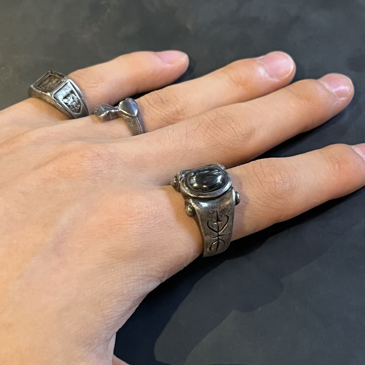 海外で買い付けたブラックストーン・トライバルデザインのシルバーリングです。