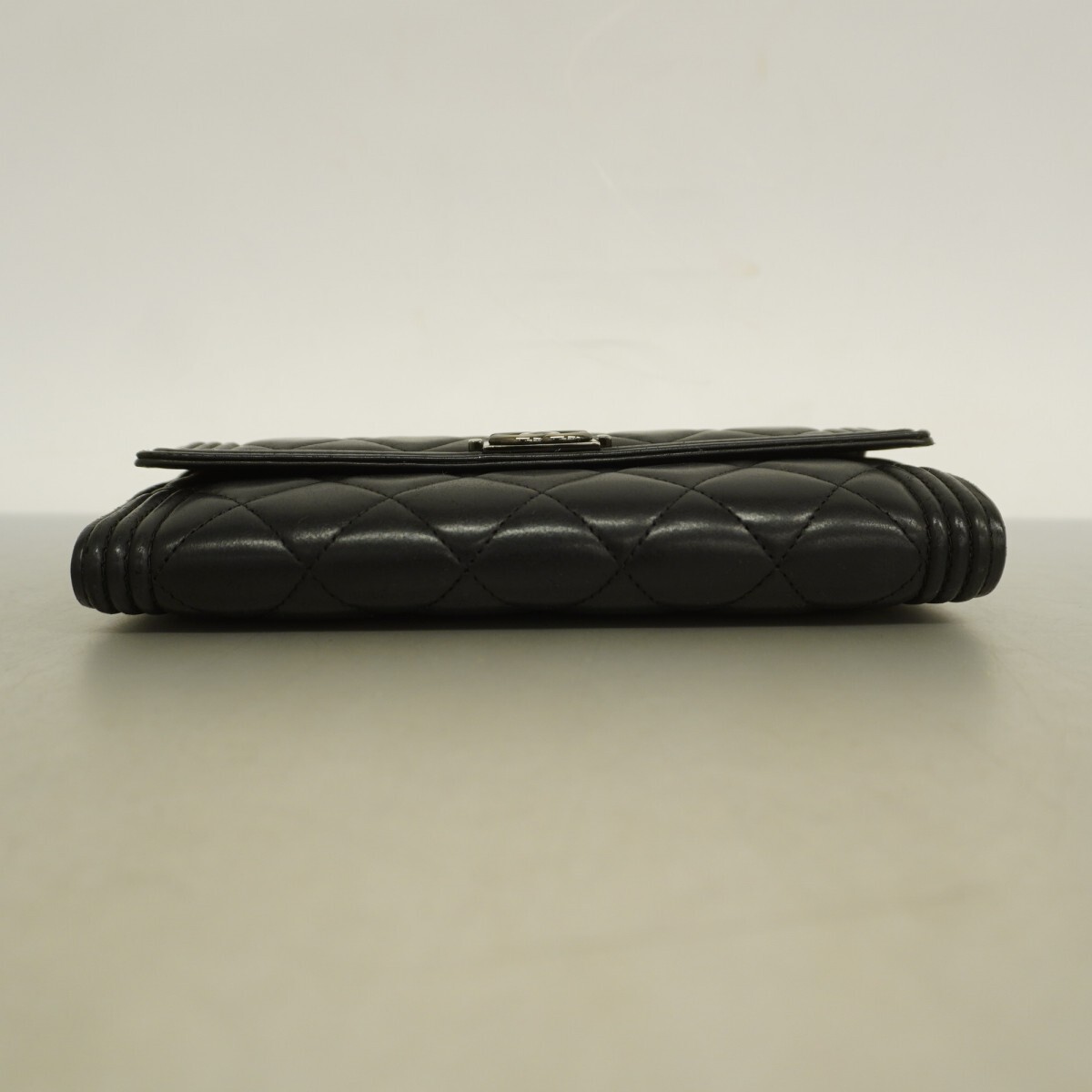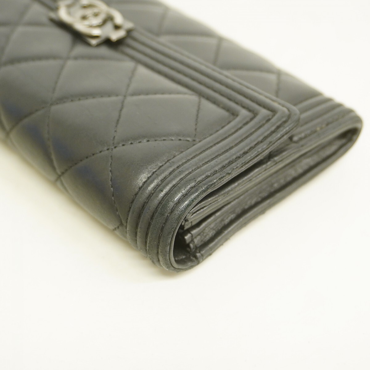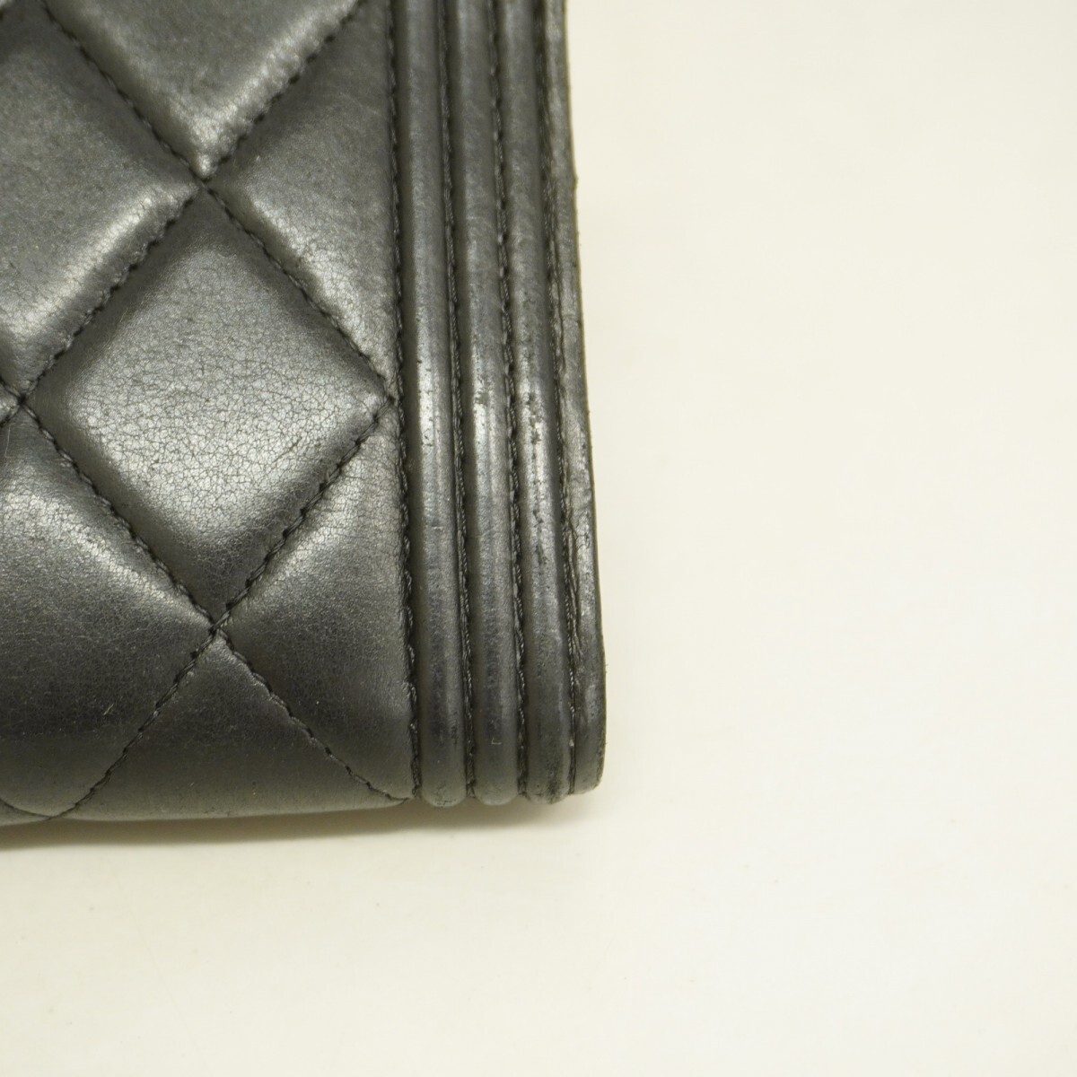 【5hb0705-h】シャネル 長財布 ボーイシャネル ラムスキン ブラック シルバー金具【中古】レディース