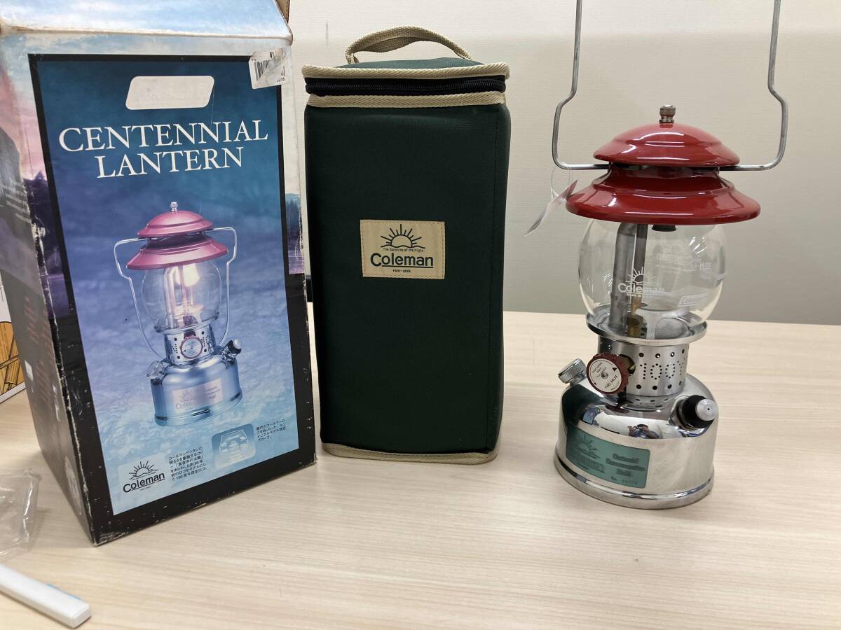 【Coleman 100周年 センテニアルランタン ケース付き】 【サイズ】 高さ:約31cm(本体部分のみ) 高さ:約48cm(持ち手部分含む) ケース大きさ:約34cm ※外箱、ケースが付属致します。 多少の使用感がみられます。 ポンピング不良はありません。 そのほか状態については写真にてご確認お願い致します。 |