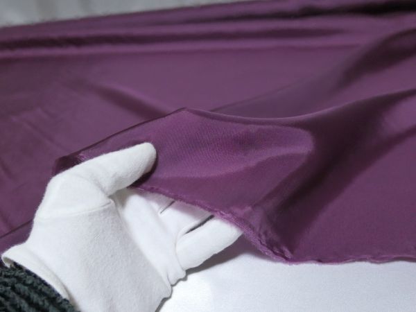 | 婦人服の裏地に使用しているキュプラです。色は紫系、長さ約120c××幅約118㎝、厚さの参考までに1㎡あたりの重さは約70gです。なお、ロールの最末端部の品のため表面に保管中にできてしまった圧縮あと・巻きくせ等があり、新品のきれいな状態とはかなり違いますので画像にて確認願います。したがいまして訳あり品として同品質の生地と比較して割安で出品しておりますので、表面の状態など品質におけるクレームはご遠慮願います。その点をご理解の上ご入札をお願い致します。完璧な商品をご希望の方は専門のプロのお店での購入をお勧めいたします。目立たない裏地として使用する分には品質的に問題はないかと思います。 ※素人による撮影ですし、PCやスマホの機種の違いによっても画像の色や風合いが実際の生地と微妙に異なる場合がございますのでご了承ください。 ※画像にある生地以外の物は商品に含みません。 | |||