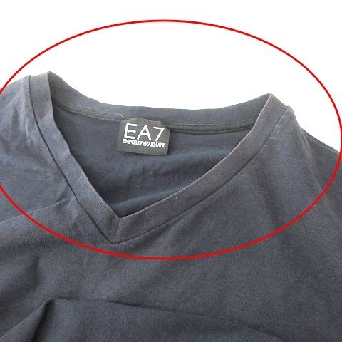 エンポリオアルマーニ EMPORIO ARMANI EA7 アームワッペン Vネック Tシャツ 半袖 カットソー XLサイズ 紺 ネイビー ■MET1 メンズ