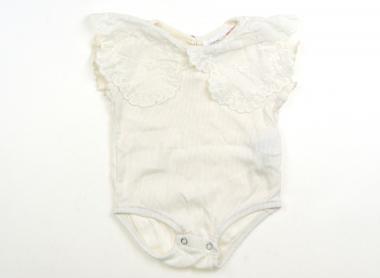 実際のサイズ表記は9-12months/80cm。後ろボタン開き。股下スナップボタン開き。リブカットソー素材。裾付近に薄茶色いシミあり。洗いざらし感がありますが、普段使いにいかがでしょうか。