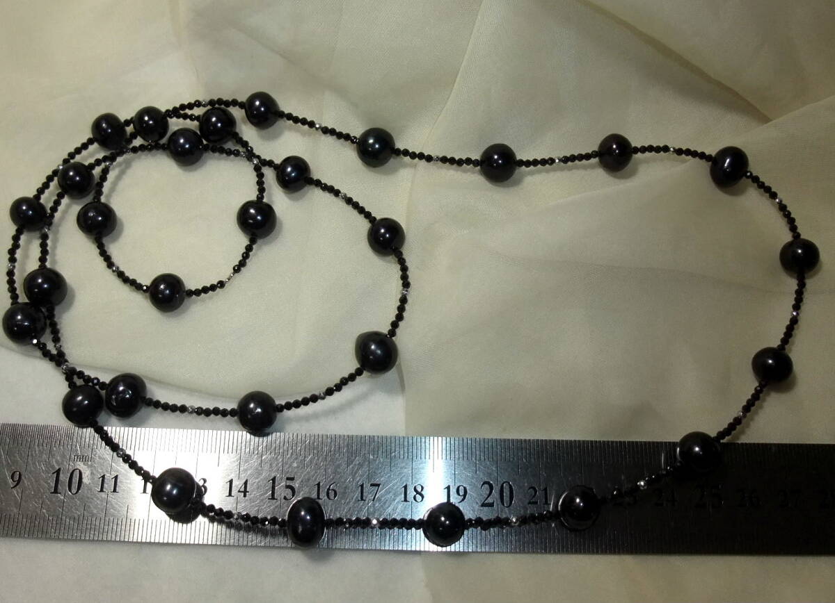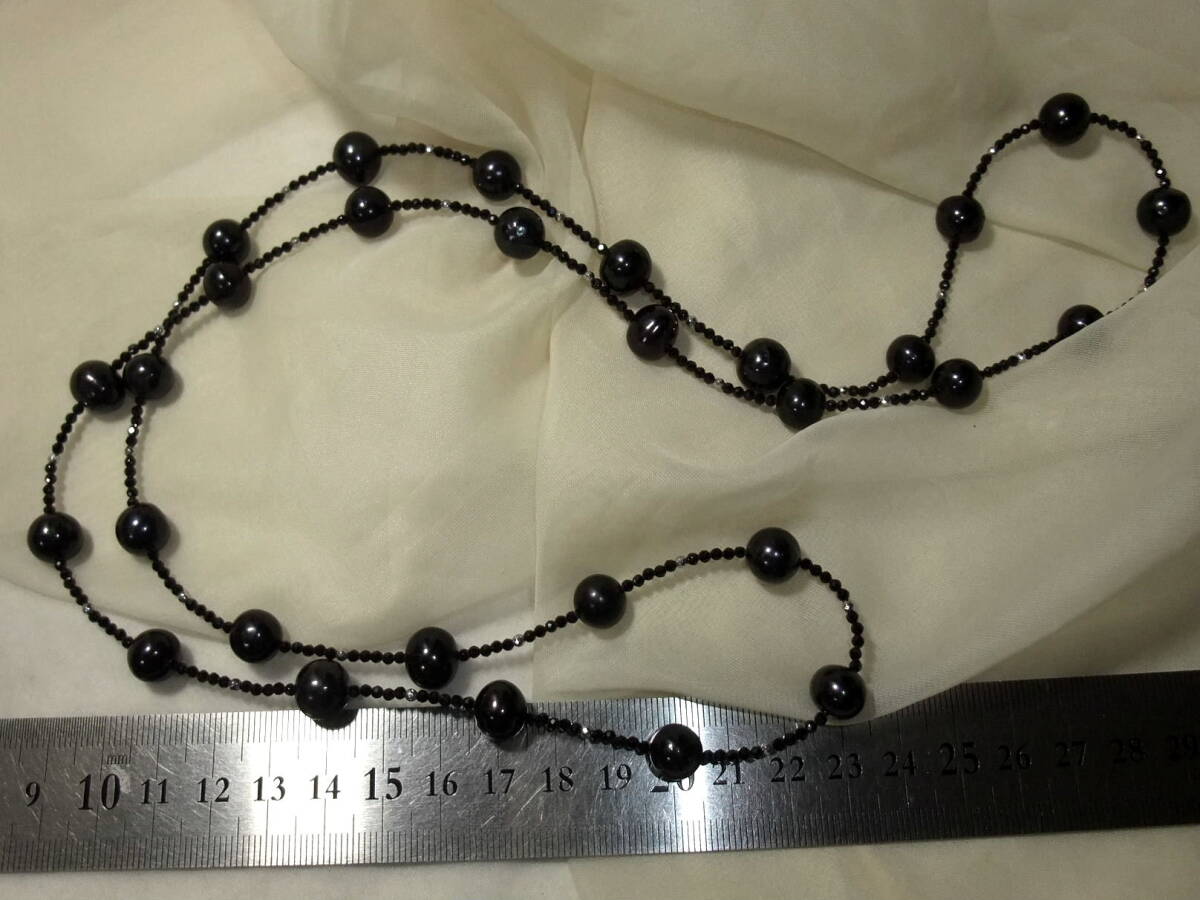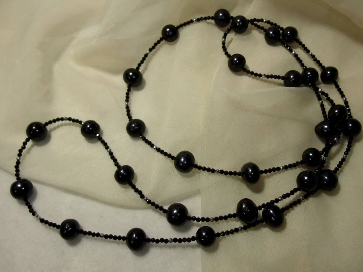 190‐7綺麗!極上テリツヤルースブラック黒系90㎝ロングネックレス!本物真珠パールpearlとその他天然石等お素材のロングネックレス高品質