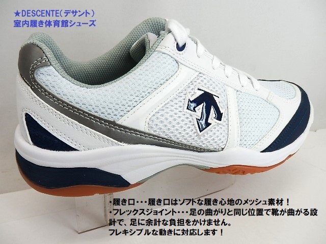 アウトレットDESCENTE(デサント)室内履き体育館シューズ デサント運動靴DST100Tホワイト/ネイビー 27.0cm 2E/期間限定特価!