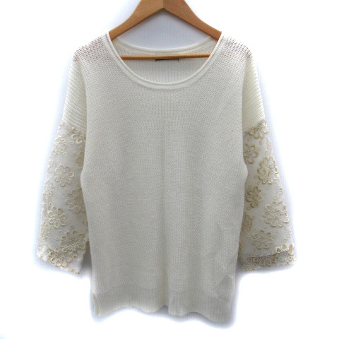 ロッソ ROSSO アーバンリサーチ ニット セーター 長袖 ラウンドネック 刺繍 切替 麻 リネン F 白 ホワイト /SM16 レディース