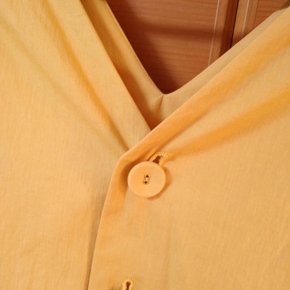 着丈約110センチ、胸元のV字から裾まで約95センチ、ボタン側のV字から裾まで約93センチ。