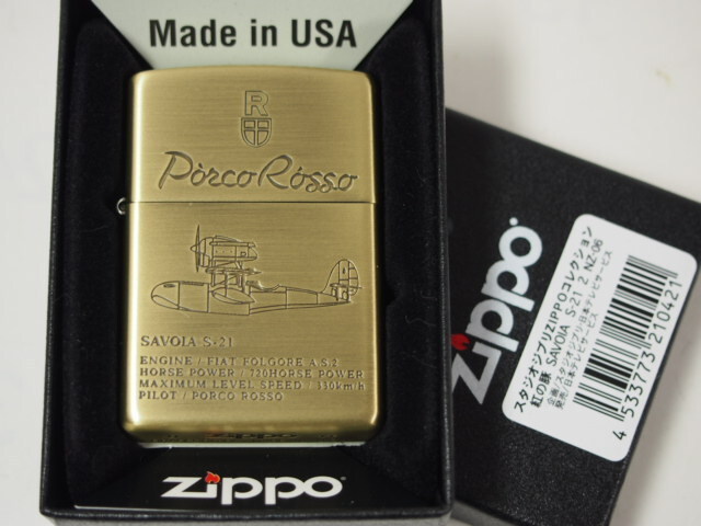 ■(希少)Zippo スポット品:ジッポー紅の豚 SAVOIA S-21ポルコ NZ-06、 (ジッポー社正規モデル・スタジオジブリ正規承認品・宮崎駿作)