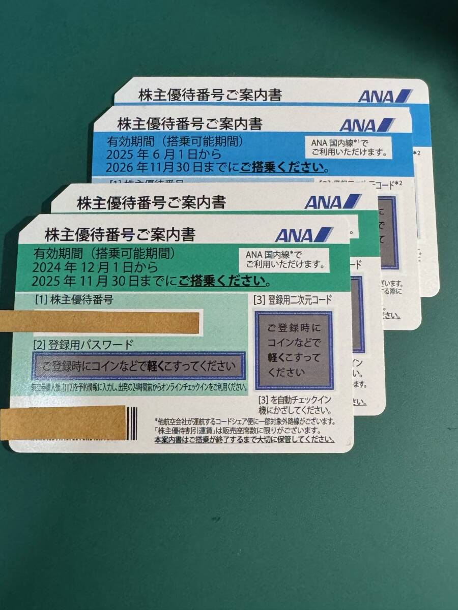 送料無料 ANA 株主優待券 4枚セット【有効期限2025年11月30日×2枚】&【2026年11月30日×2枚】
