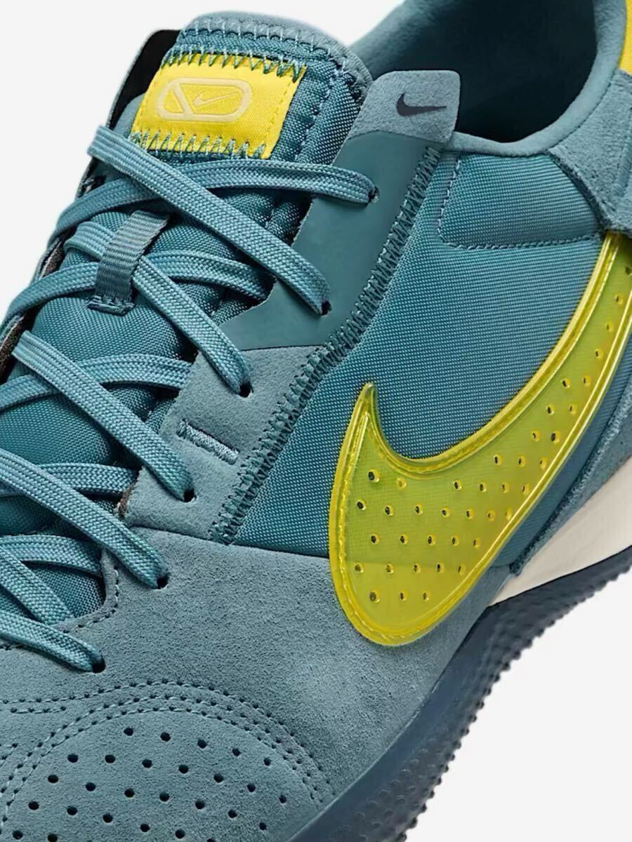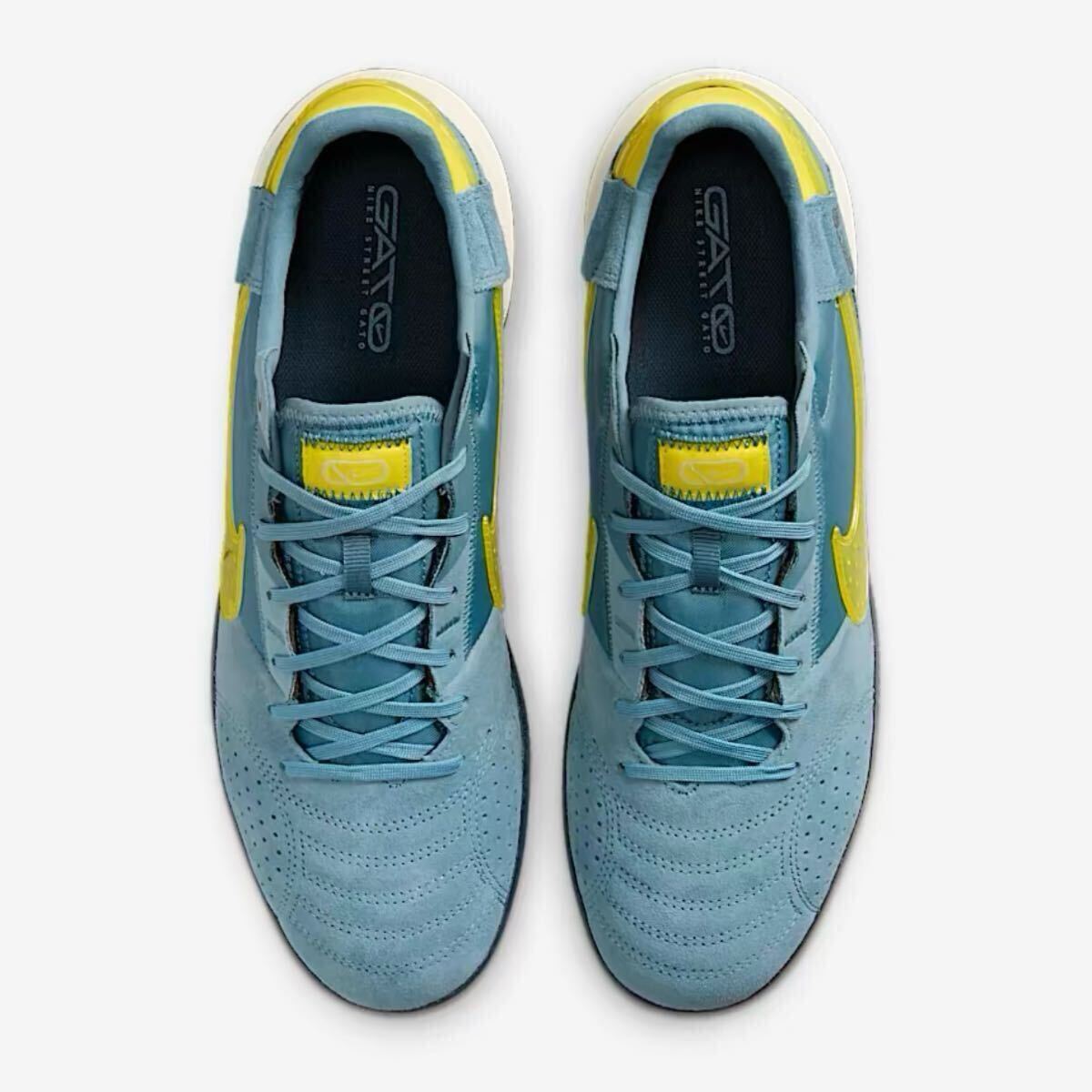 ナイキが誇るフットサルシューズ、ストリートガト。確かなグリップ力を備えたアウトソールがあらゆる場面でしっかりとトラクションを発揮。随所にアクションを妨げないアレンジが施され、コートはもちろん、ストリートでのプレーにも対応する仕上がり。スモーキーブルーのスエードアッパーに、ライトニングイエローのスウッシュが映える新鮮なカラーリング。コート上ではもちろん、デイリーユースにも最適です。