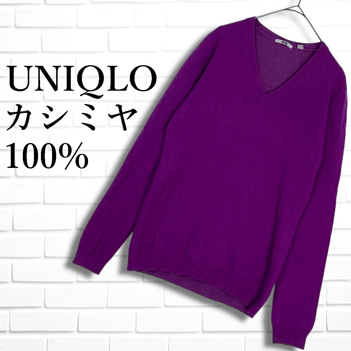 ◆良品◆ UNIQLO ユニクロ カシミヤ 100% ニット 長袖 セーター 紫 パープル レディース M ◆送料無料◆ 1125H◇
