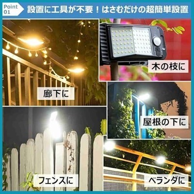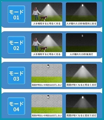 • 園芸等の軽作業の照明利用はもちろん、釣りやキャンプ、BBQなどアウトドアイベントにも大活躍! 【スマートな人感センサー&4つ点灯モード】ボタン1回押して、72LEDセンサーライトは常夜灯+人感モードの4つモードが切り替えます。