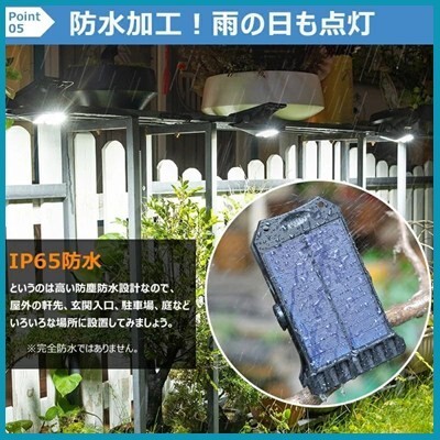 • 【IP65防水&配線不要】屋外ledソーラーライトはIP65防水防塵仕様で、雨やホコリにも強い安心の防水設計で、どんな天候でも安心して使用できます。