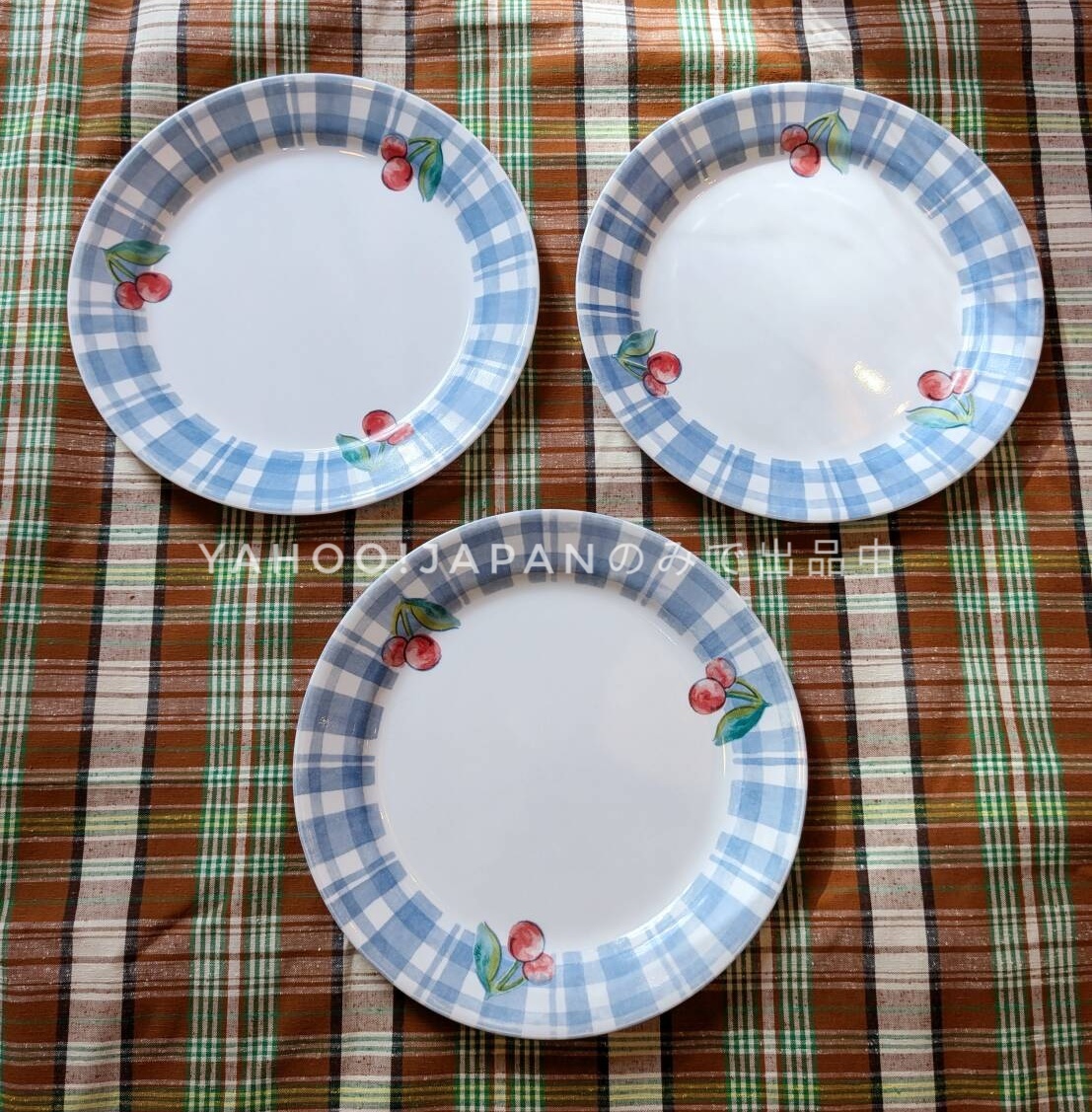 Corelle コレール ヴィンテージ さくらんぼ柄 made inUSA  アメリカ製 レトロ チェリー柄 Gingham Blue 廃盤 ギンガムチェック