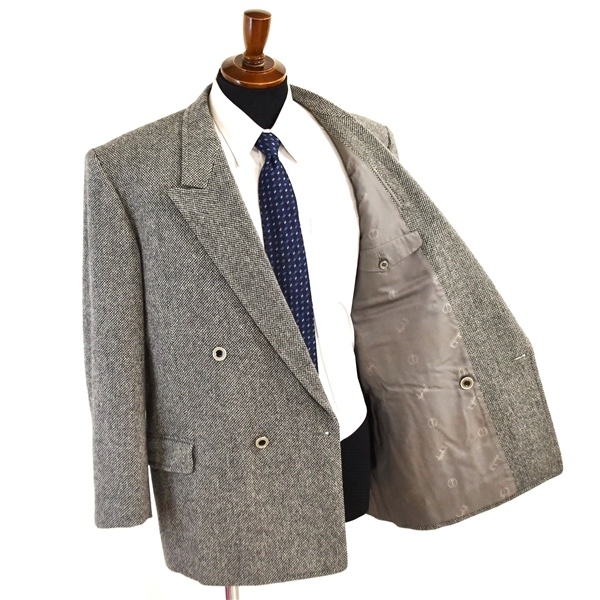 ・秋冬対応。4つボタンダブル。袖口3つ釦開き見せ。総裏地仕上げ。サイドベンツ。フラップポケット。ネーム刺繍あり。