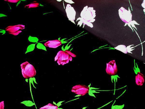 RV0514 プリントベンベルグベルベット(黒地に花柄、幅92cm×長さ1m単位延長可)