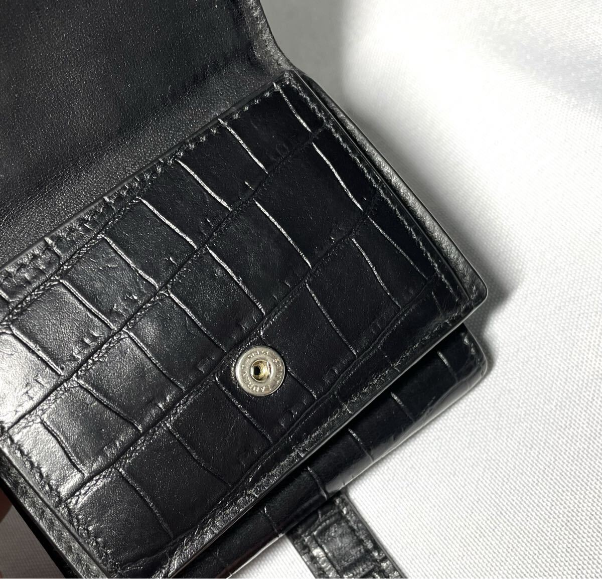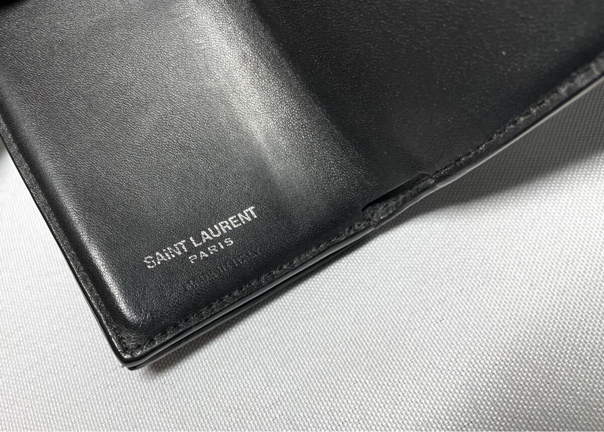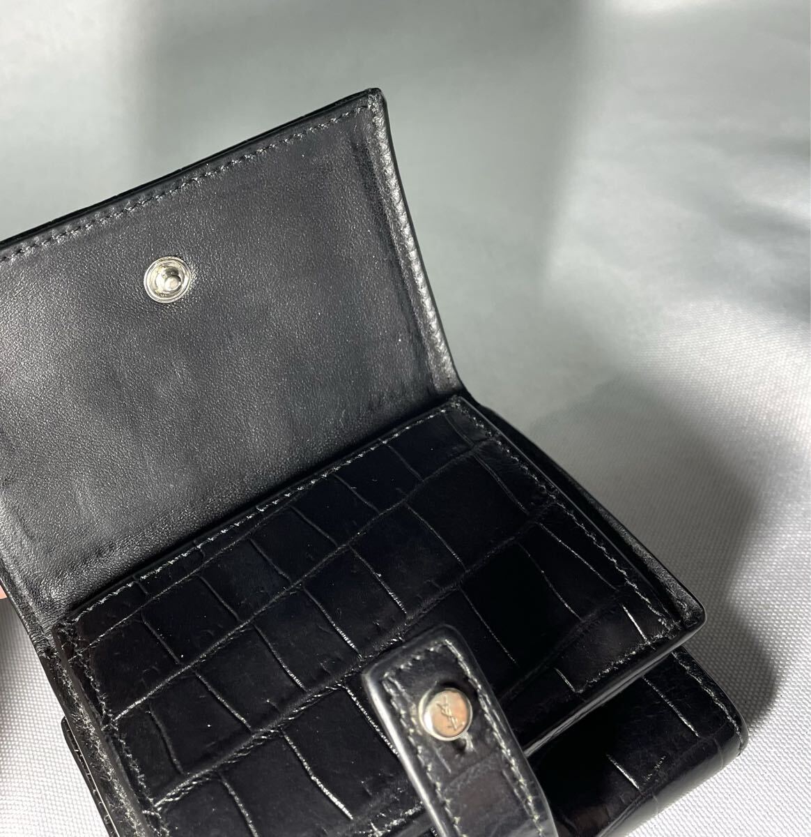即決美品 Saint Laurent Paris サンローランパリ 三つ折りレザー財布 黒 YSL クロコダイル 型押し コンパクトウォレット 付属あり