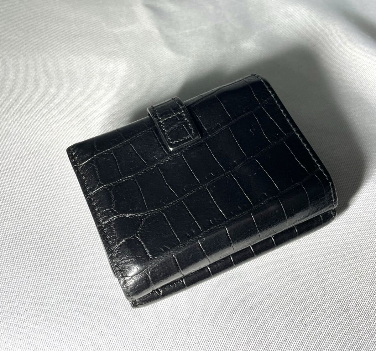 サンローランパリ クロコダイル型押し コンパクト三つ折りレザー財布です!