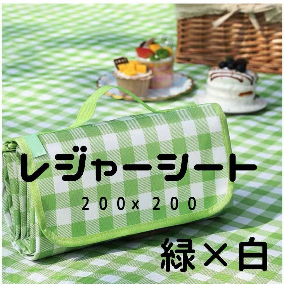 レジャーシート ピクニックシート 防水 大判 200×200 折り畳み 新品 緑