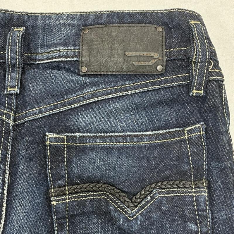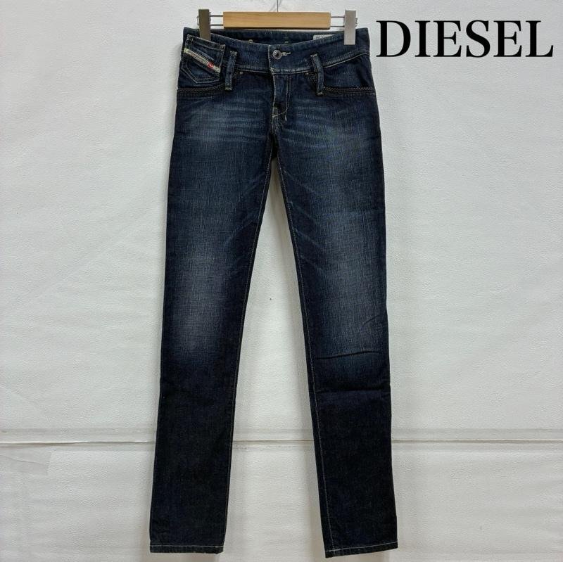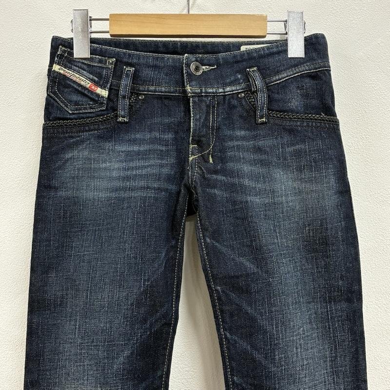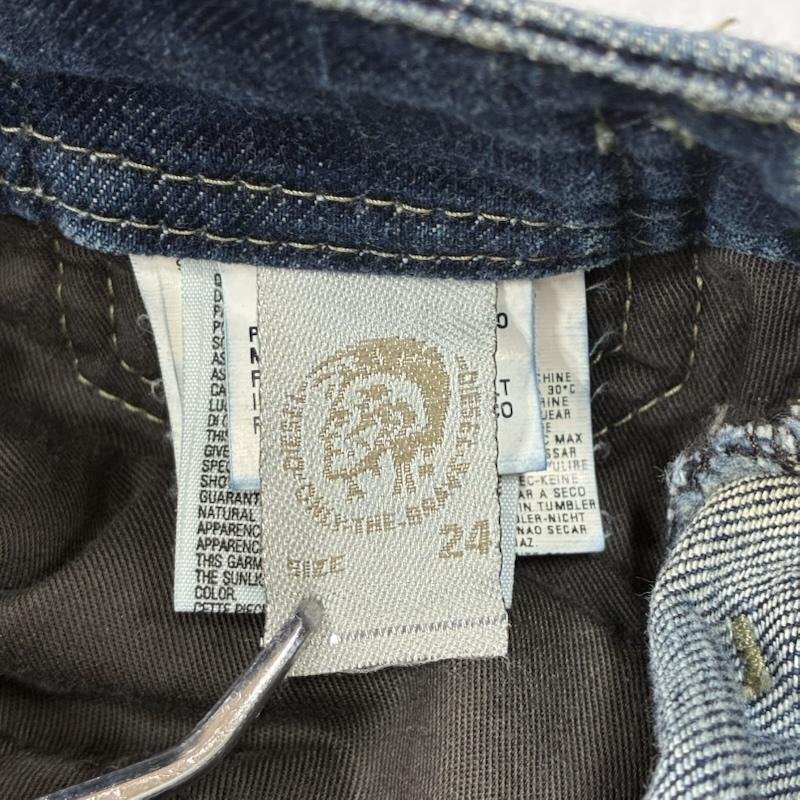 ディーゼル ローライズ ストレッチ スキニー ダメージ デニム パンツ 編み込みレザー Y2K 24インチ -