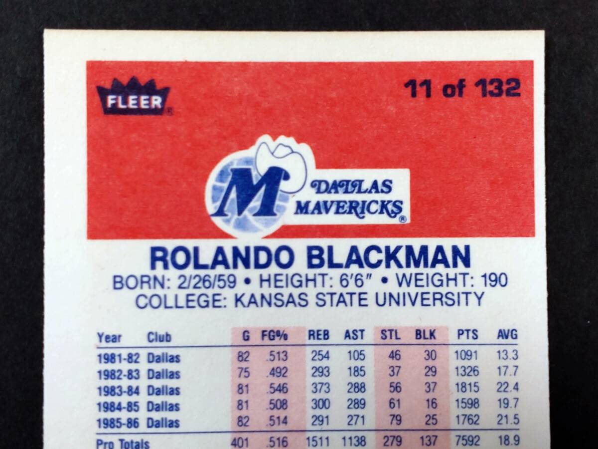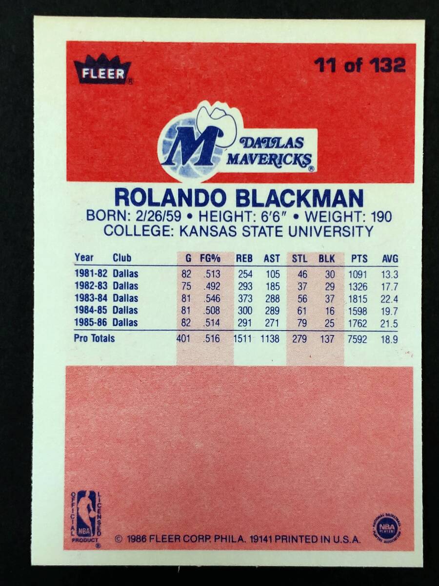 1986-87 Fleer レギュラーカード #11 Rolando Blackman ローランド・ブラックマン