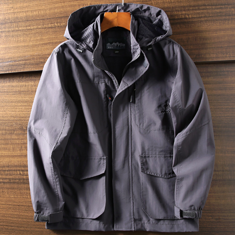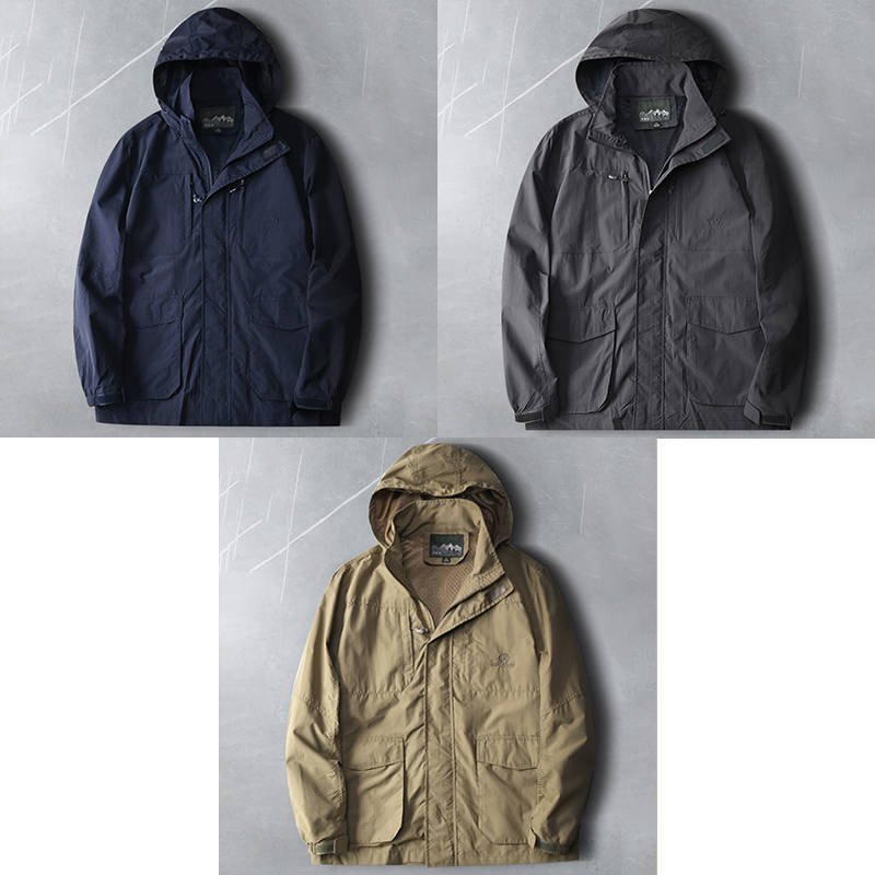 W1009-2XL/灰色 軽量&通気!新品 メンズ フード付き ジャケット アウトドアパーカー 防水防風 撥水 春秋 ビジネス カジュアル アウター
