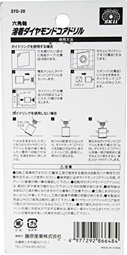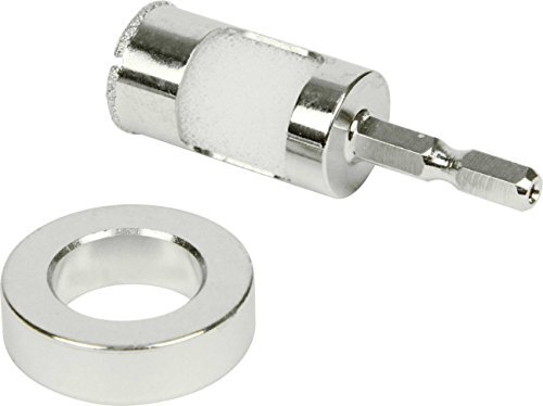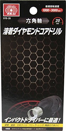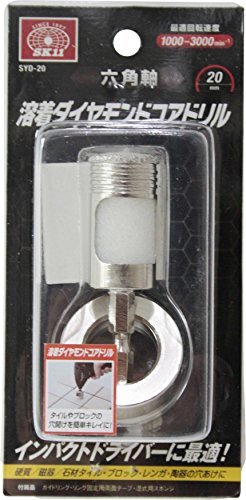 説明 インパクトドライバーで硬質タイル等の難削材も楽に穴あけできる 【用途】 硬質タイル・磁器タイル・石材・ブロック・モルタル・レンガ・陶器等の穴あけ作業 【特徴】 ・仕上がりは欠けもなく非常にきれいで、超硬ドリルの10倍以上長持ち ・溶着ダイヤモンドなので、電着よりも耐久性がある ・ガイドリングを付属しており、初めて使用される場合も簡単に穴あけ作業ができる ・回転のみでの穴あけのため、低振動・低騒音で穴あけができる ・六角軸のためインパクトドライバーに装着できる 【注意事項】 ※回転工具専用ですので、打撃系工具で使用する場合は回転モード専用で(打撃を加えない)使用して下さい。 ※ダイヤモンドコアドリルのコア抜き穴長さは15mm以下となるようにして下さい。 ※深穴穿孔中のダイヤモンドコアドリル先端に冷却水が不足する場合は、数秒に一度タイルからダイヤモンドコアドリル先端を抜き差し(先端を冷却)して使用して下さい。