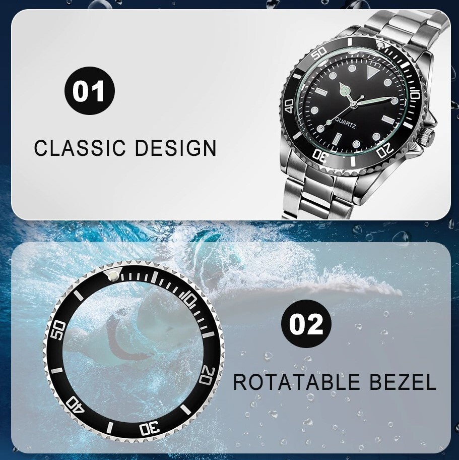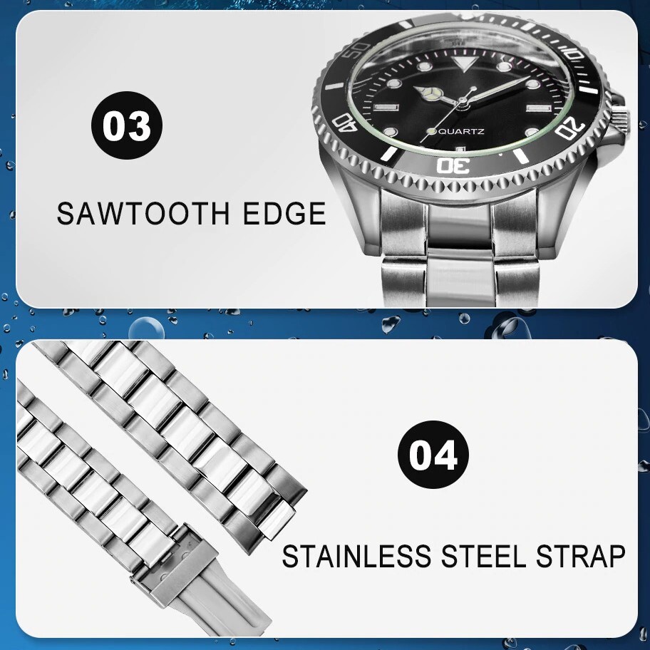 高品質なSUS304ステンレス鋼や、日本製(SEIKO)ムーブメントを採用したビジネスウォッチです。