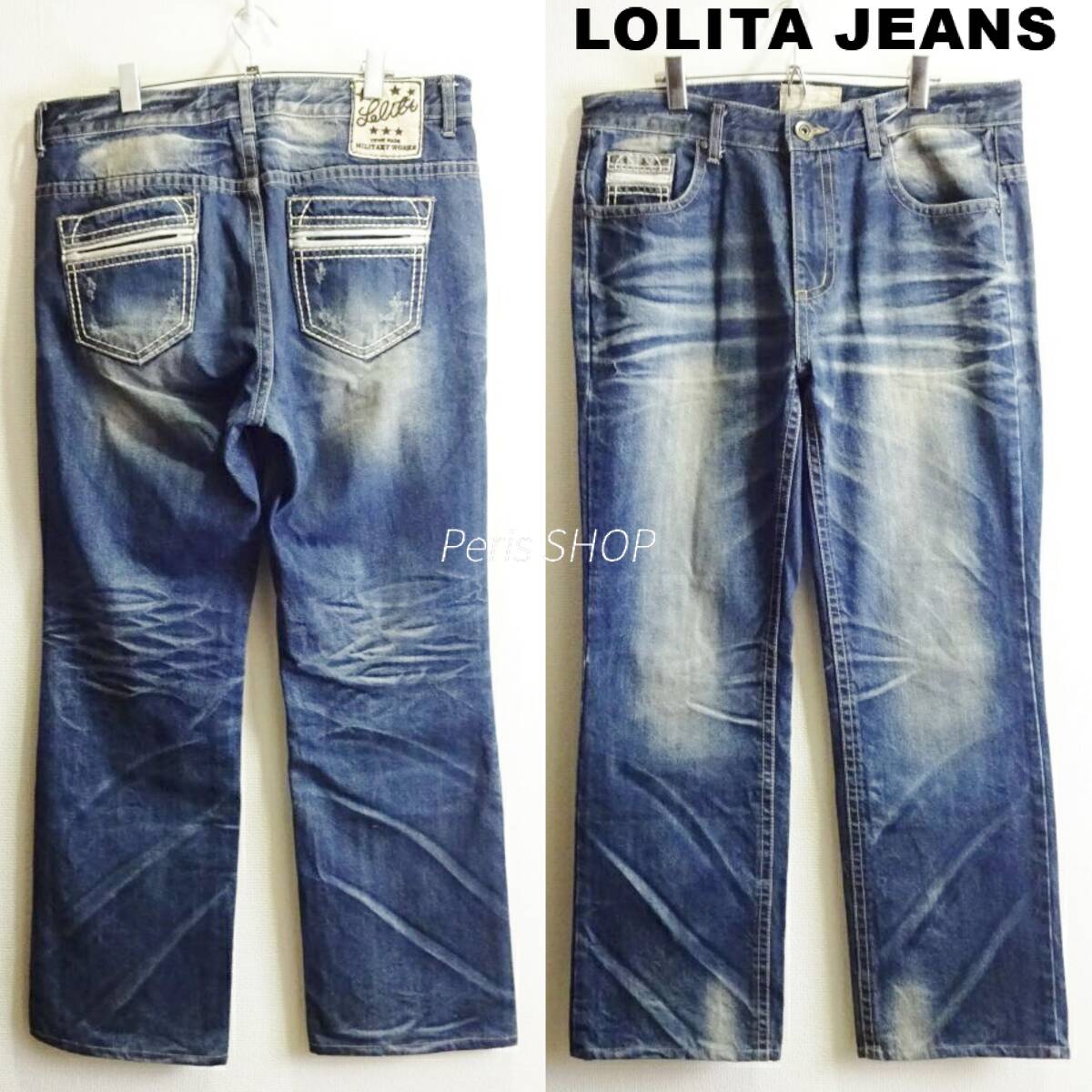 即決★ 送料無★ ビッグサイズ★ ロリータジーンズ ルーズストレートデニム 【XL】 藍青 Sz.34 Lolita Jeans J182