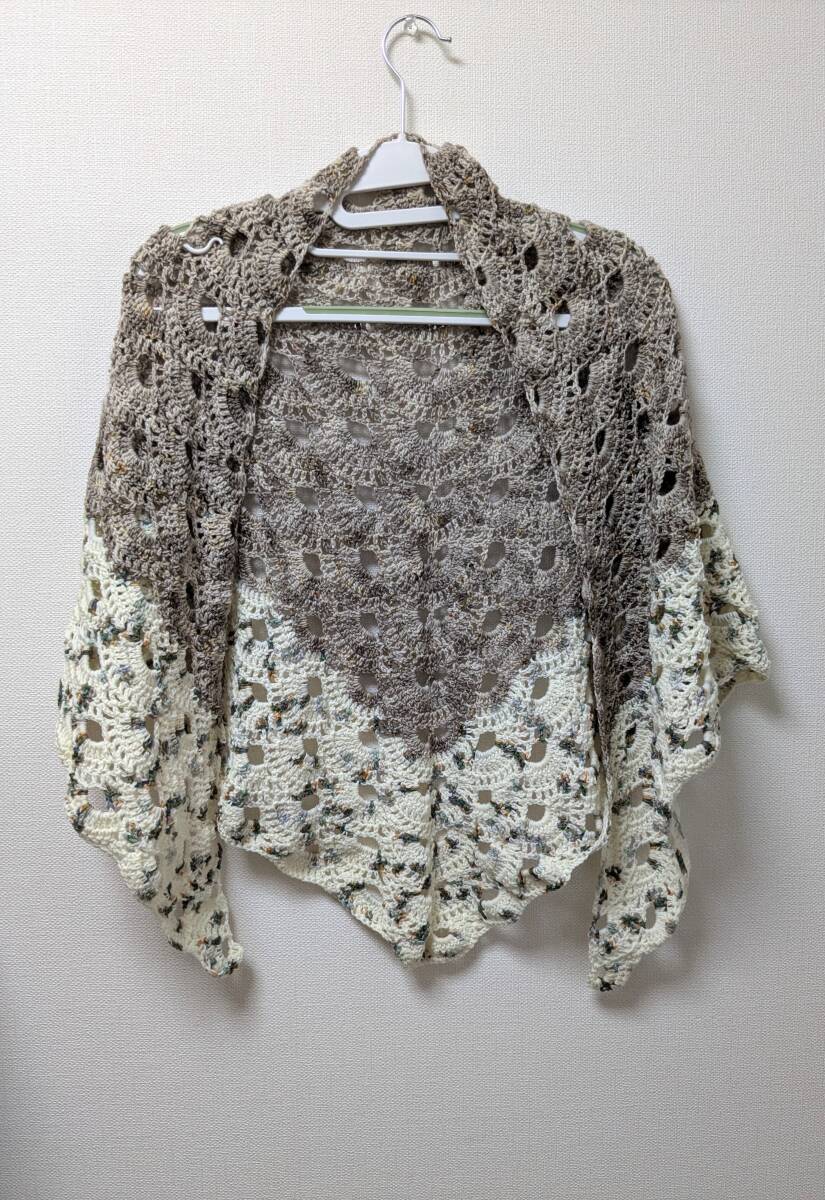 ハンドメイド 三角ショール 三角ストール 海外毛糸 手編み