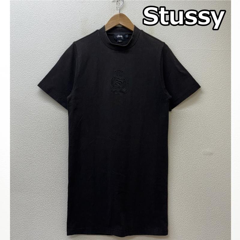 ステューシー Sロゴ 刺繍 ハイネック 半袖 Tシャツ ワンピース 黒 ブラック S