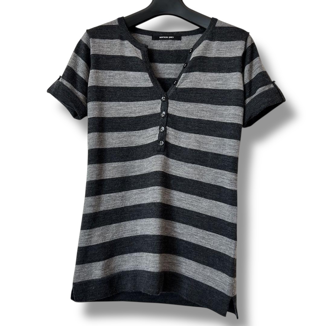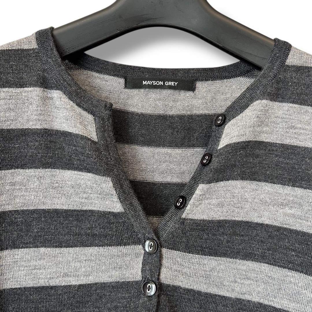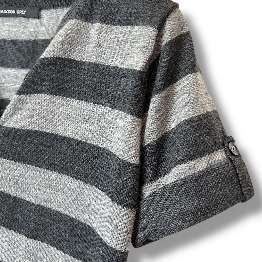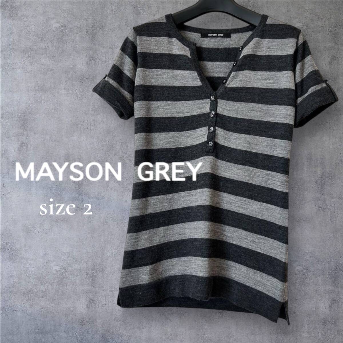 MAYSON GREY メイソングレイ ボーダー柄 半袖ウールニット グレー系 サイズ2 M相当