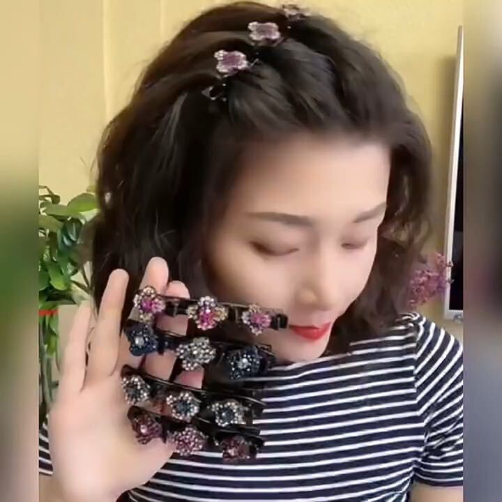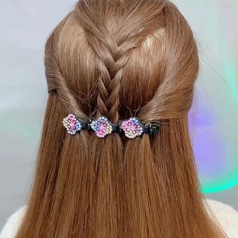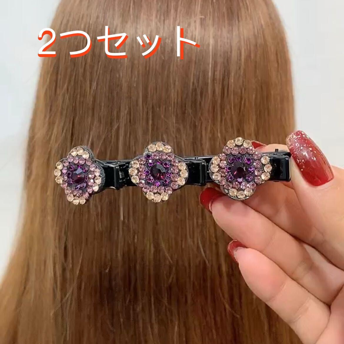 説明→キラキラストーンのお花が可愛い3連クリップ