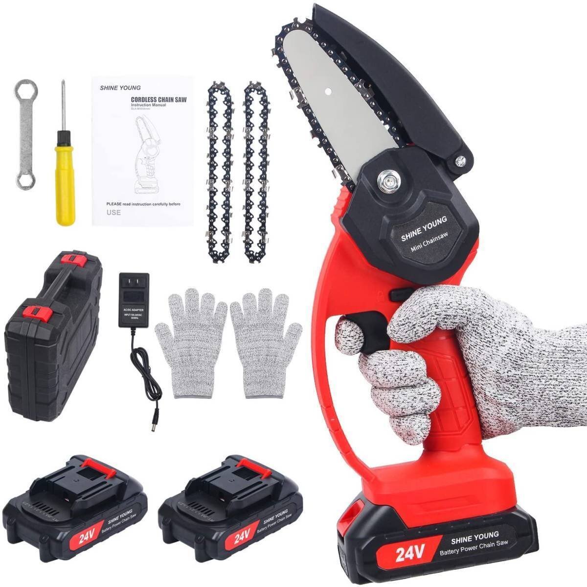 充電式チェーンソー24V 軽量 小型チェンソー 電動チェーンソー チェーン2個 バッテリー2個付き 軽量 ポータブル 工切断 枝切り 伐採 薪作り 園芸設備 このコードレスチェーンソーは高品質のガイドチェーンを採用しています。 非常に強力な純銅モータを使用し切断効率が高く、動力チェーンソーは直径15センチの原木を約10秒で切ることができます。 木材の切断、枝の剪定、園芸にとても適しています 充電式チェーンソー 高温焼入ガイドプレート、超耐摩耗チェーンも耐久性があります。 チェーン ソー鋭いのこぎりの刃が焼入れ加工施された素材を採用しており、高硬度で耐磨耗性に優れていて、チェーンは簡単に壊れません。 搭載内蔵モーターは、過電流保護、過熱保護、充電保護などの安全装置が装備されています。 |
