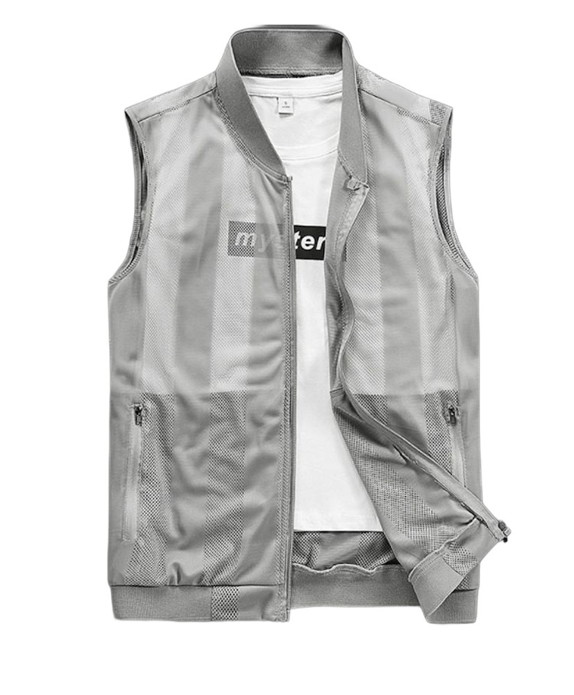 送料込!値下/未使用/匿名配送/メンズ メッシュベスト アウトドアベスト リブ襟 多ポケット 涼しい速乾 通気 Lサイズ位 グレー