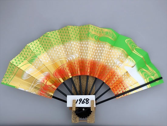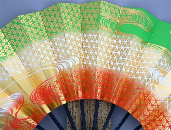 舞扇子 A1968 金箔流水三角鹿の子 若草・朱天地 【箱なし】