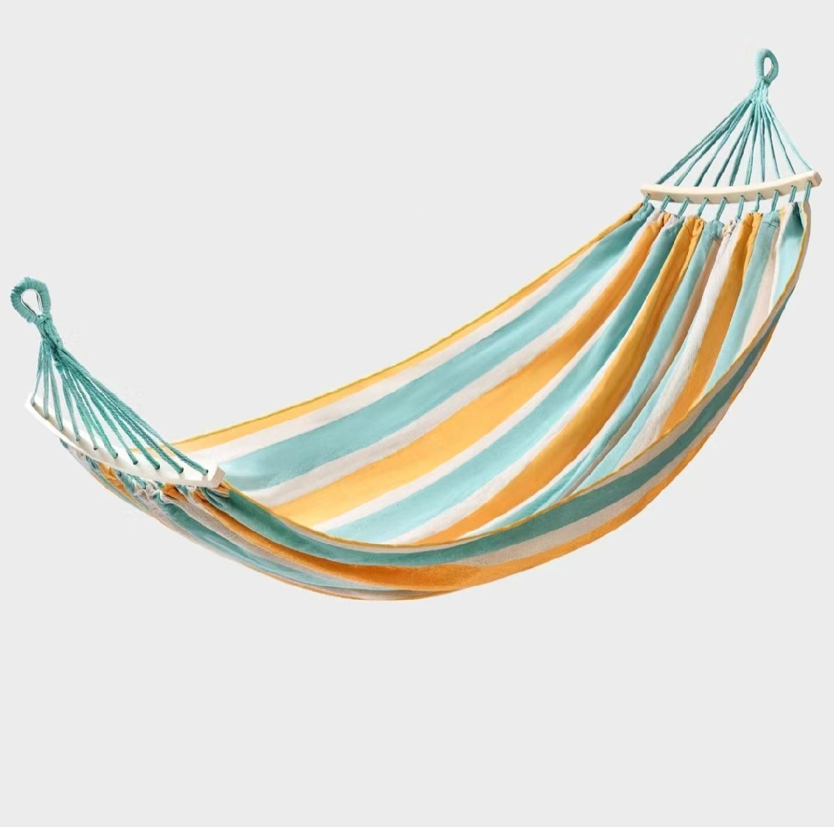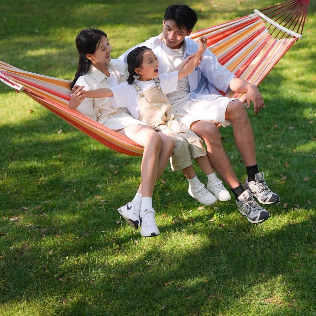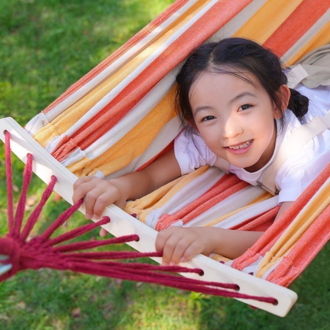 【ここがポイント】綿麻混の素材を採用し、十分な厚さと通気性があり、丈夫で破れにくい、250kgまでの耐重荷全く問題なし。両端に木棒が付いている仕様、ハンモックが絡まりにくく、扱いやすくなります。