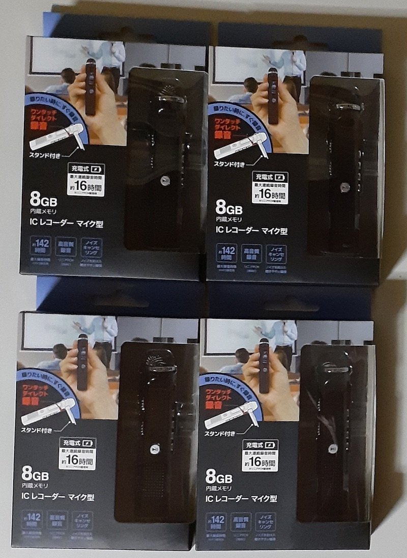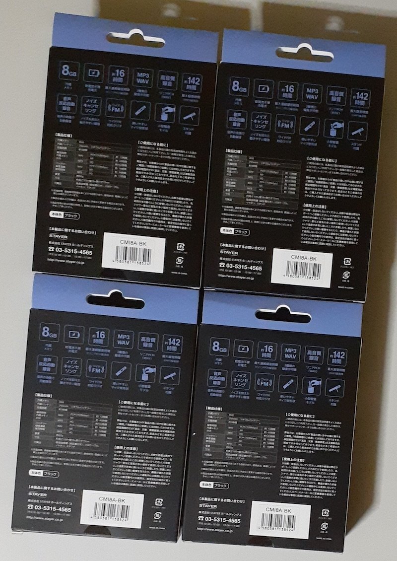 6459 ICレコーダー CMI8A-BK 4個セット 内蔵メモリ8GB マイク型 充電式 高音質録音リニアPCM(WAV) ノイズキャンセリング ワイドFM対応ラジオ STAYER